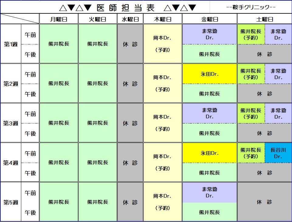 2026年3月以降の各週の勤務医師